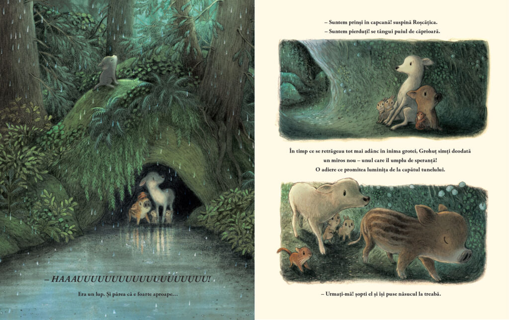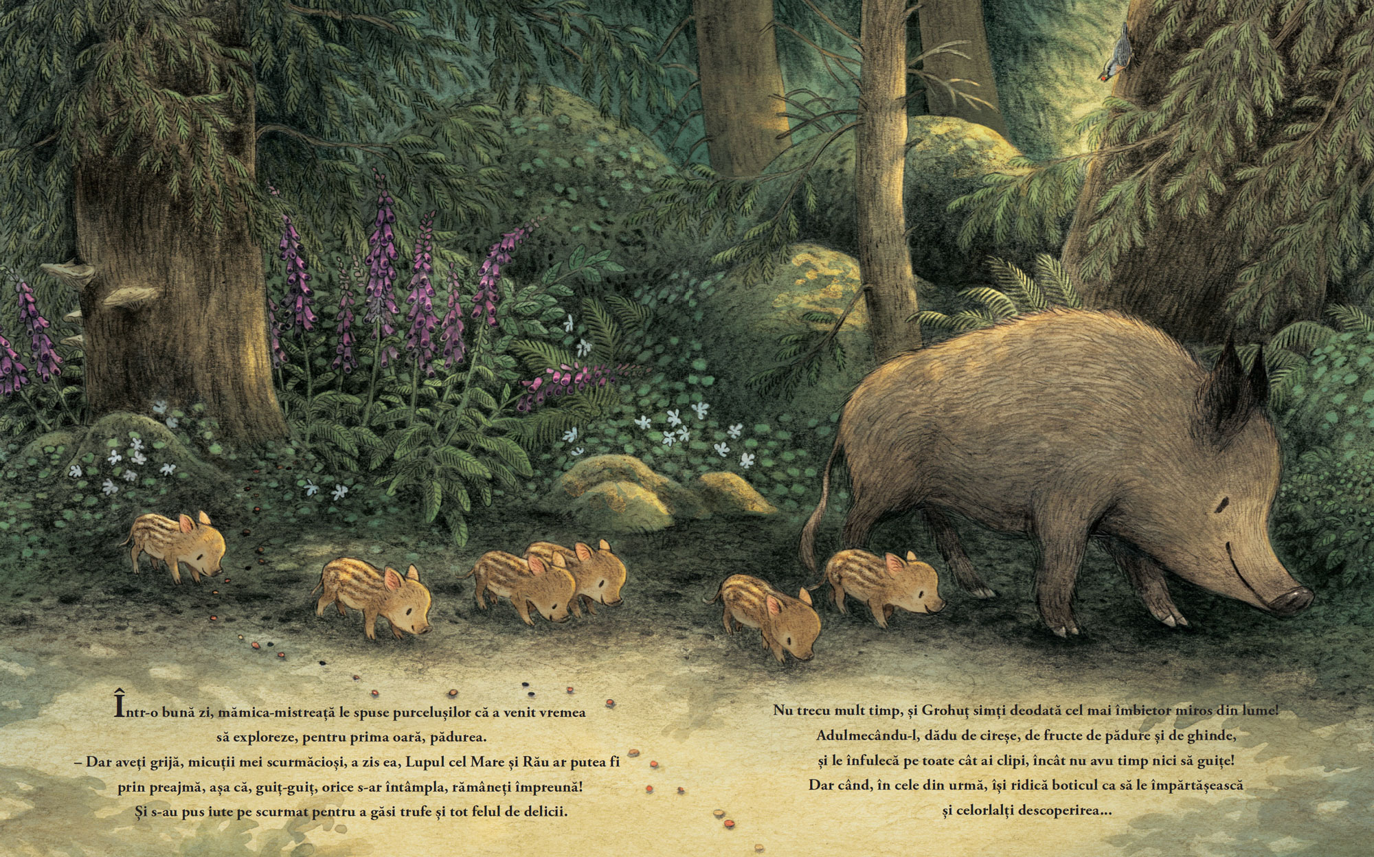 Grohut, un pui de mistreț curajos, se ia după urmele unui miros delicios și se rătăcește în pădurea deasă. Oare va reuși să-și regăsească familia?